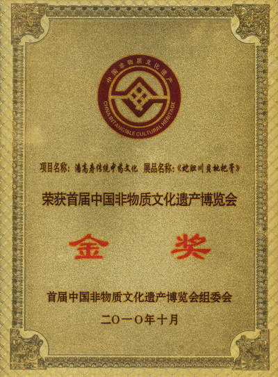 12月16日,在廣州市非物質(zhì)文化遺產(chǎn)工作會議上,我司名牌產(chǎn)品“蛇膽川貝枇杷膏”獲頒“首屆中國非物質(zhì)文化遺產(chǎn)博覽會金獎”。