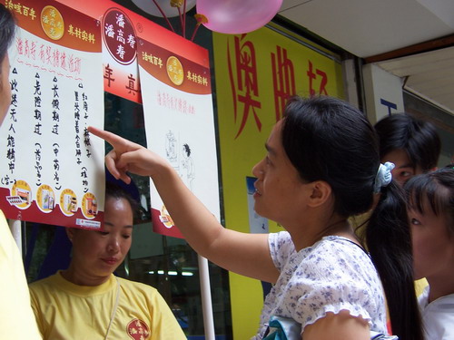 福建的終端工作起步較遲。今年以來,公司領導及廣東部經理多次蒞臨,親自部署、指導,組建了終端工作隊伍。于彥平作為市場專員被派駐閩南。兩個多月以來,小于以她真誠、熱情和對工作的責任感,謙虛、謹慎、戒驕戒躁,贏得了銷區廣大商業客戶、各大連鎖藥店人員的交口稱贊。打開了福建地區終端工作的局面。有幾個亮點,給我們留下深刻印象。首先,小于配合區域經理對OTC代表進行初步培訓;其次,把企業文化的元素融入營銷活動是福建終端工作的一個特色(見圖),并學習用DV記錄促銷活動的熱烈場面;還有,她善于與藥店負責人進行交流,傳播公司品牌形象。