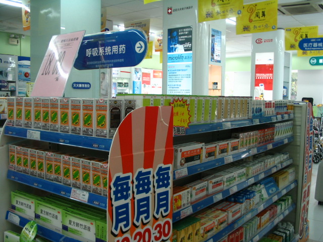 博濟康之選在所有的門店都掛有我司四大維價品種的吊旗